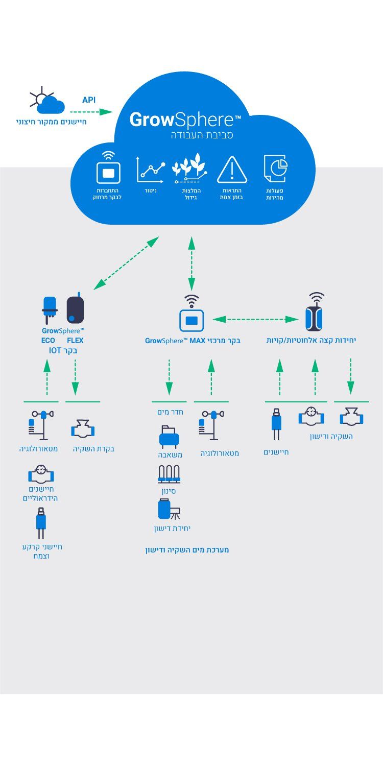 בדיוק בשביל זה יצרנו את ™GrowSphere מערכת ההפעלה הראשונה עבור השקיה מדייקת. באמצעות ממשק גראפי, פשוט ואינטואיטיבי יותר לתפעול תוכלו למקסם את התפוקה לדונם בצורה אמינה יותר ועם פחות מאמץ.