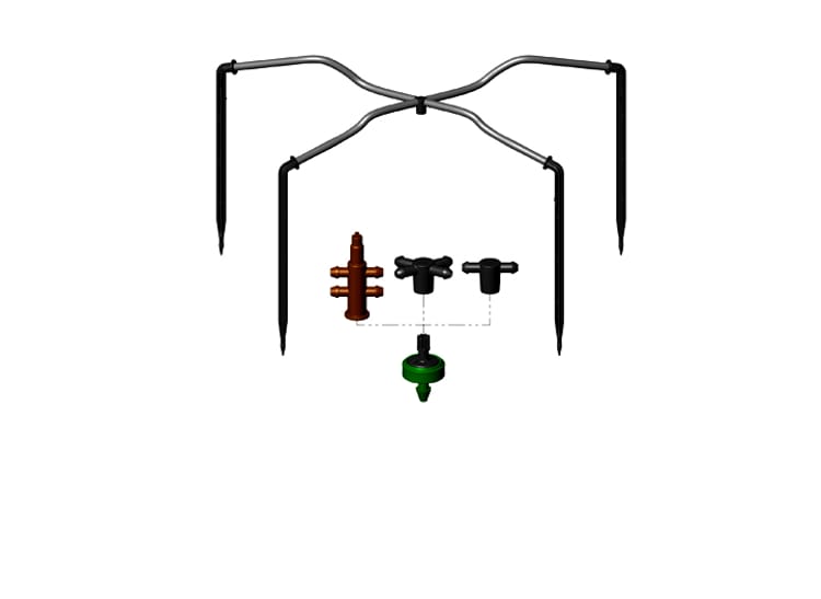 - מעברי מים משתנים - המכלול בנוי מטפטפת אם, שתפקידה לווסת את כמות המים הרצויה. מהטפטפת יוצאות צינוריות PVC באורכים שונים, שתפקידן להעביר את המים אל הטפטפת המשנית, הנמצאת בקצה הצינורית. כל זאת במטרה ליצור השקיה אחידה לכל צמח וצמח.